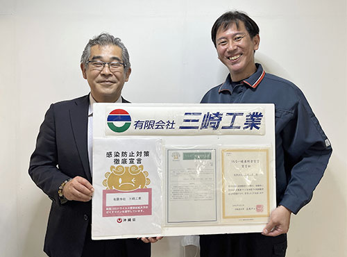 渡嘉敷さん、知念さん 三崎工業は1982年(昭和57年)創業。水道工事事業を行っている。