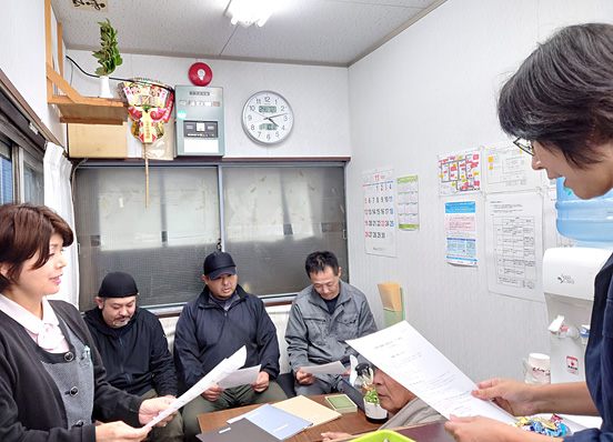 「その後、地元の銀行の方が当社に来られた際に、健康経営というものがあるということや、産業医の役割などの話をあらためて聞きました。今働いている従業員もいずれ高齢化していくことを考えると、産業医を選任して健康面をみてもらうと安心だと思いました。産業医は50人未満の事業場でも選任できるということでしたので、お願いすることにしました。このように、地域の労働基準監督署や銀行、保険会社、外部産業保健サービス機関などの関係機関の人にいろいろ教えてもらいながら、健康経営に関する知識を少しずつ身につけてきました。」