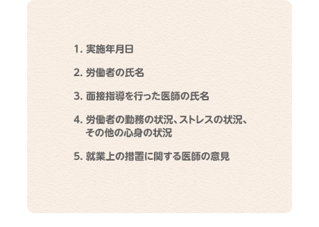 会社は、面接指導の結果として記録を作成し会社側で5年間保存しましょう。